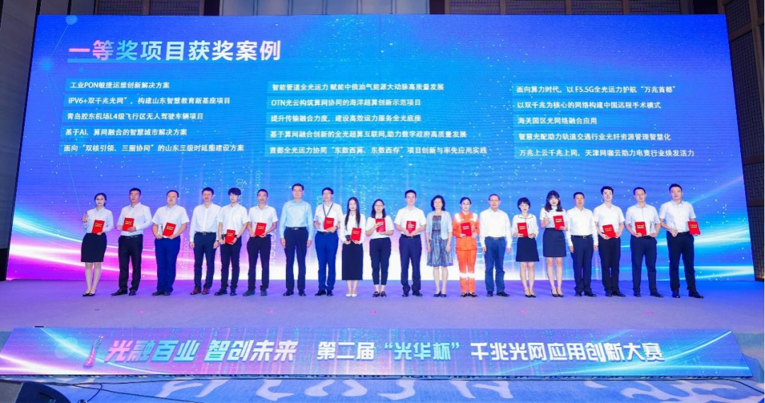 近日,由山东省通信管理局、山东省工业和信息化厅、中共山东省委网信办、山东省大数据局指导,中国信息通信研究院主办的第二届“光华杯”千兆光网应用创新大赛北部大区赛在青岛顺利举行。本次大区赛由北京、天津、河北、辽宁、吉林、黑龙江、山东等七省参赛项目组成,中国电信股份有限公司研究院联合烽火通信科技股份有限公司、北京小米移动软件有限公司、中国电信股份有限公司北京分公司申报的《工业PON敏捷运维创新解决方案》荣获一等奖。