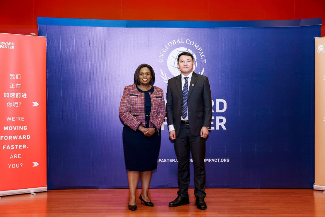 联合国助理秘书长、联合国全球契约组织总干事桑达·奥佳博(Sanda Ojiambo)女士与烽火通信张明合影