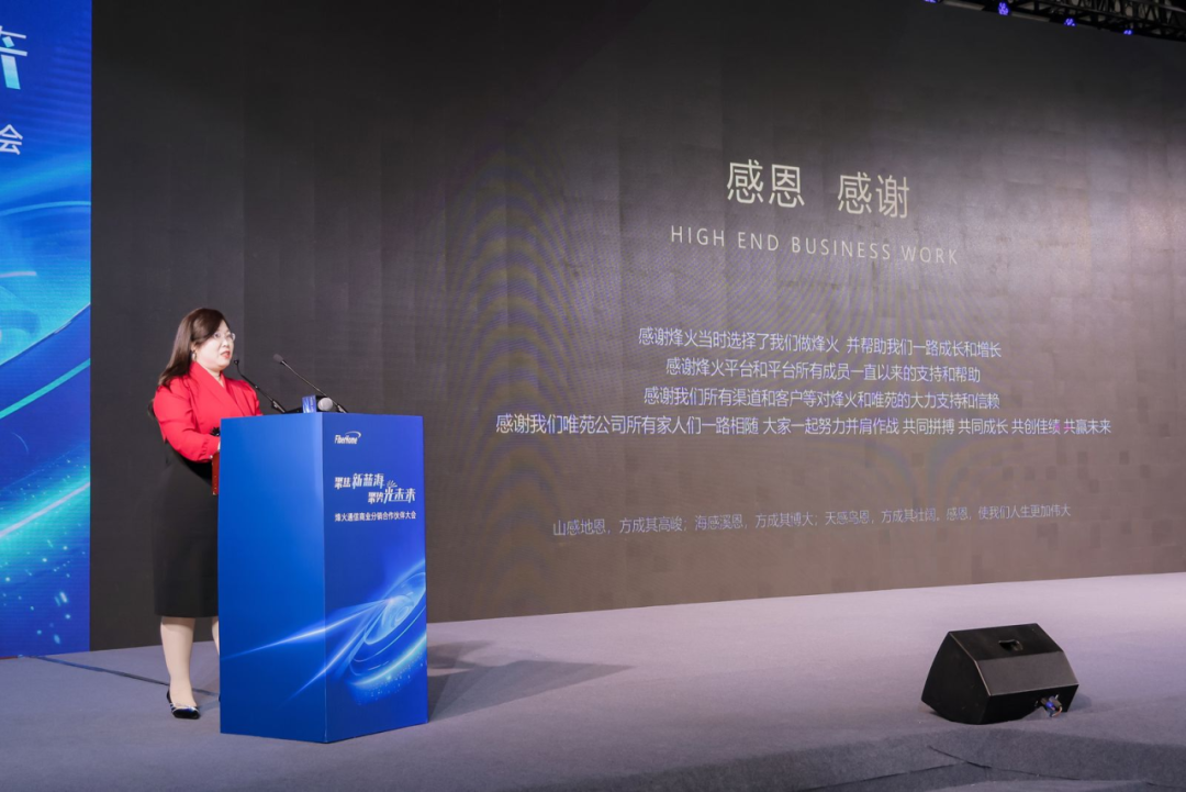 烽火分销的长足发展离不开合作伙伴的一路相随和鼎力相助,西安唯苑电讯设备公司总经理周秀红、伟士佳杰科技有限公司烽火事业部总经理王立丰代表合作伙伴发表主题演讲,回顾合作历程,分享与烽火通信携手取得市场成果的经验。