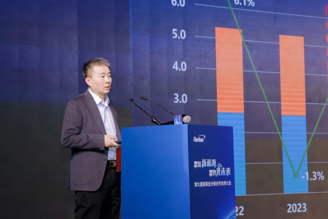 烽火通信副总裁范志文出席大会并发表致辞。2023年,烽火通信逆水行舟、迎难而上,坚持以创新驱动发展,烽火技术“飞天入海”,在高水平科技自立自强的道路上越走越敞亮。范志文强调,烽火分销的健康发展得益于合作伙伴们的紧密协作和积极创新,烽火通信将加大投入,完善渠道服务、优化营商环境、打磨适销产品和方案,助力合作伙伴踏上数字化转型发展的快车。