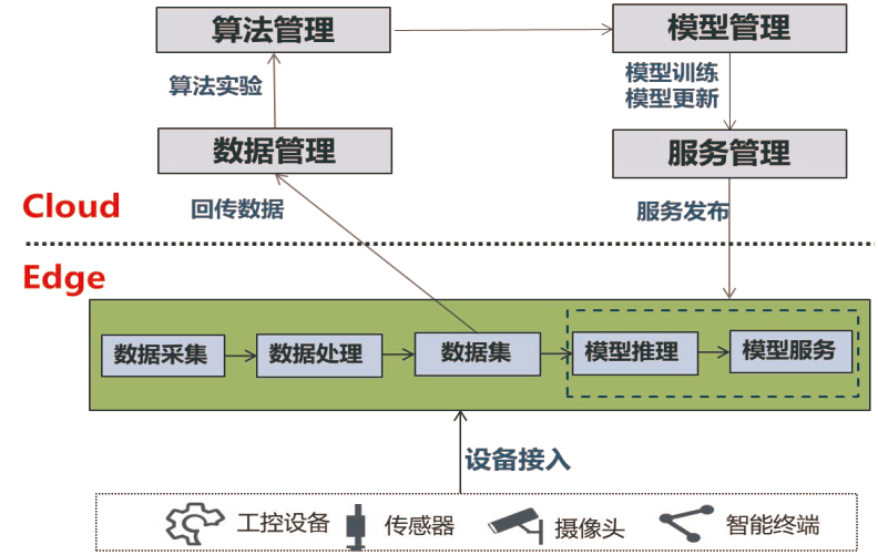 在车间搭建的生产侧边缘云,将对算力资源需求较大的模型训练及大数据分析部署在云端,边缘仅为智能应用和模型推理预留资源,通过5G网络,保证PCBA加工板缺陷的快速精准识别,生产决策的快速下达,保证产线的生产节奏不被阻塞。解决方案通过云边智能协同可利用现场数据对算法进行再训练,训练产出的模型,在部署发布后,可根据实际使用反馈的结果,对模型进行再更新,形成数据到Al服务的闭环。
