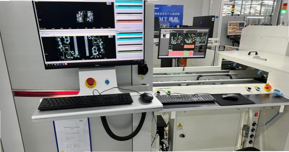 基于AI视觉的SMT工序PCBA生产质检现场示意图。