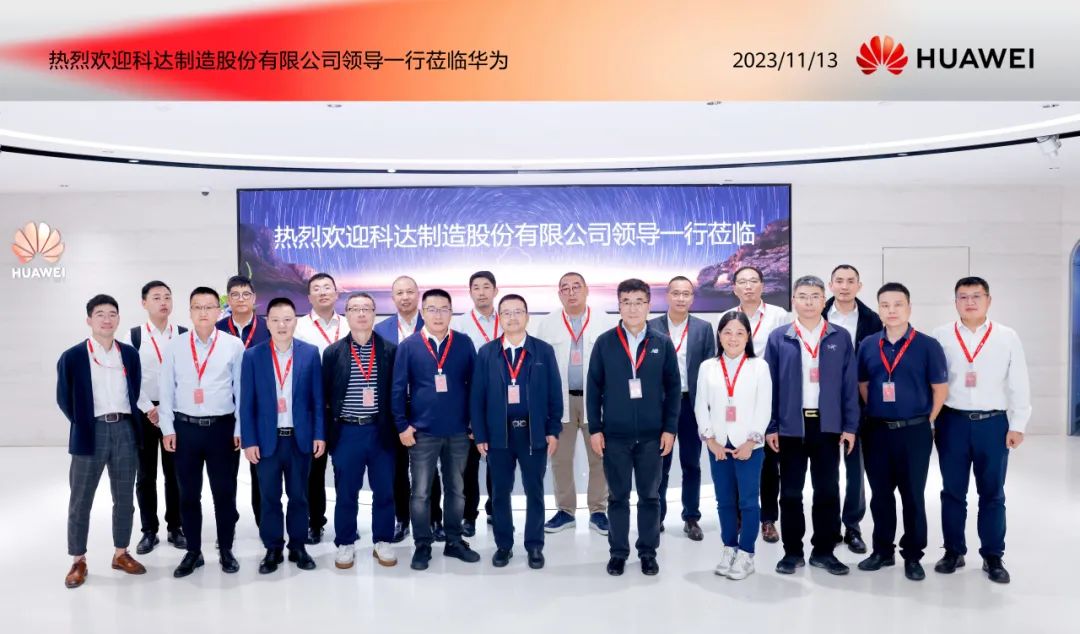 11月13日,科达制造董事长边程、董事张仲华、高级顾问谭登平,副总裁曾飞、周鹏,各业务单位负责人一行赴华为技术有限公司(以下简称“华为”)参观交流。华为云广东生态发展与运营总经理龚祺、华为数字化转型咨询专家殷宏、华为云顺德业务发展总监张雅智、华为云粤西赋能中心解决方案架构师杨凯对科达制造的到来表示热烈欢迎。