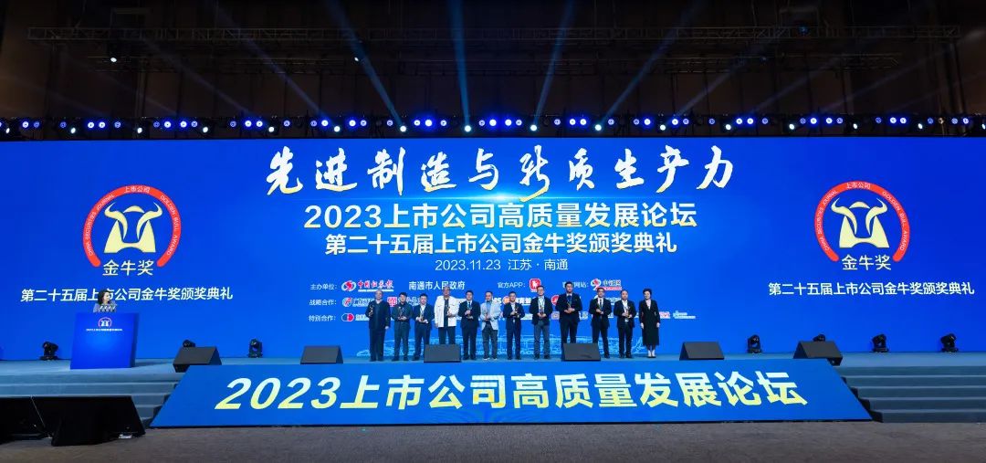 11月23日,由中国证券报、南通市人民政府联合主办的2023上市公司高质量发展论坛暨第25届上市公司金牛奖颁奖典礼在江苏南通隆重举行。经过层层筛选,科达制造从5000多家上市公司中脱颖而出,荣膺"最具投资价值奖"。同时,科达制造董事长边程先生获颁"金牛创新企业家奖"。