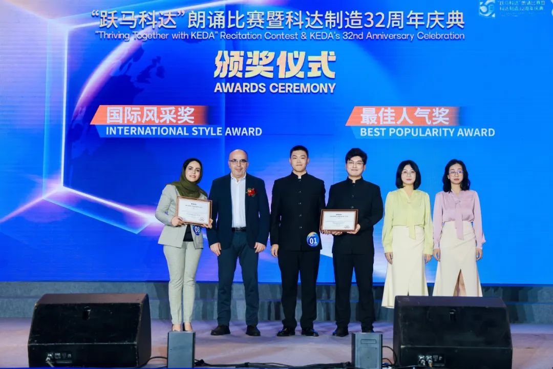“最佳人气奖”由科达陶机配件服务事业部成型机械事业部组合(雷星宇、王文奇、李龙、官艳丽)摘得,“国际风采奖”花落科达陶机国际营销中心的Mohadese。