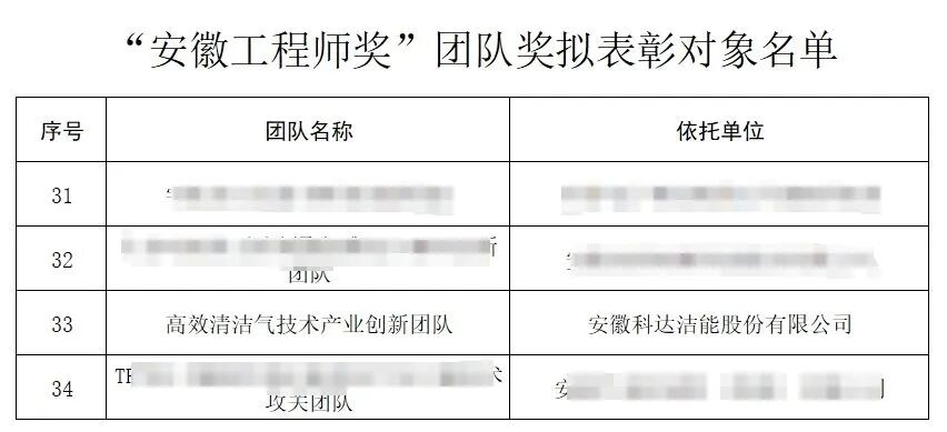 近日,安徽省人力资源和社会保障厅发布了《关于“安徽工程师奖”拟表彰对象的公示》,安徽科达洁能公司“高效清洁气化技术产业创新团队”凭借在工程技术领域的突出贡献,成功入选。