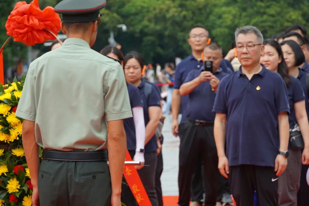 韶山行第一站来到毛泽东广场。科达制造党委在毛泽东广场向毛泽东同志铜像敬献花篮。随后,科达制造党委书记李斌发表了重要讲话。
