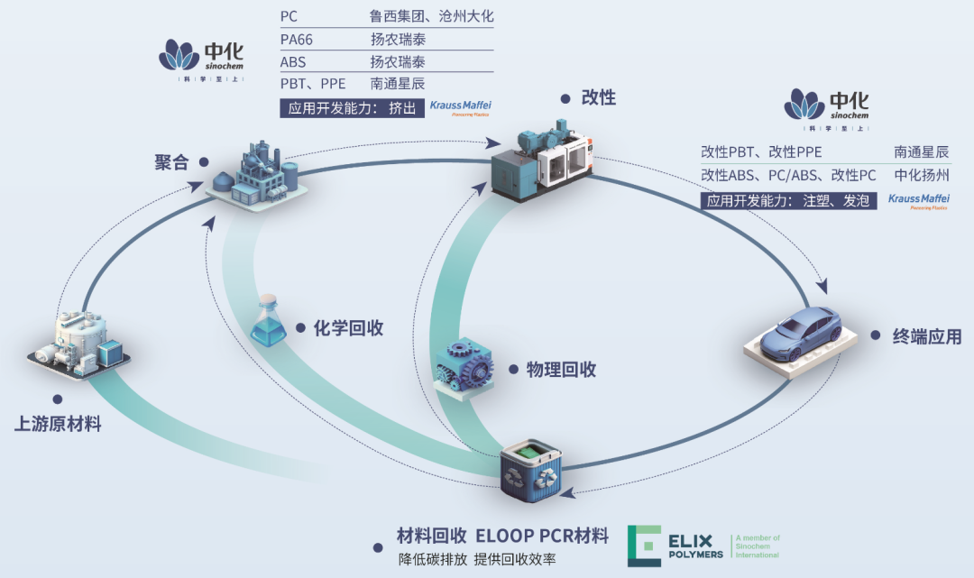 作为中国中化改性工程塑料产业链的链主企业,中化国际在本届Chinaplas展会上,重点围绕汽车材料应用,首次对外展示了中国中化从聚合、改性、注塑成型到回收利用的材料一体化可持续解决方案。