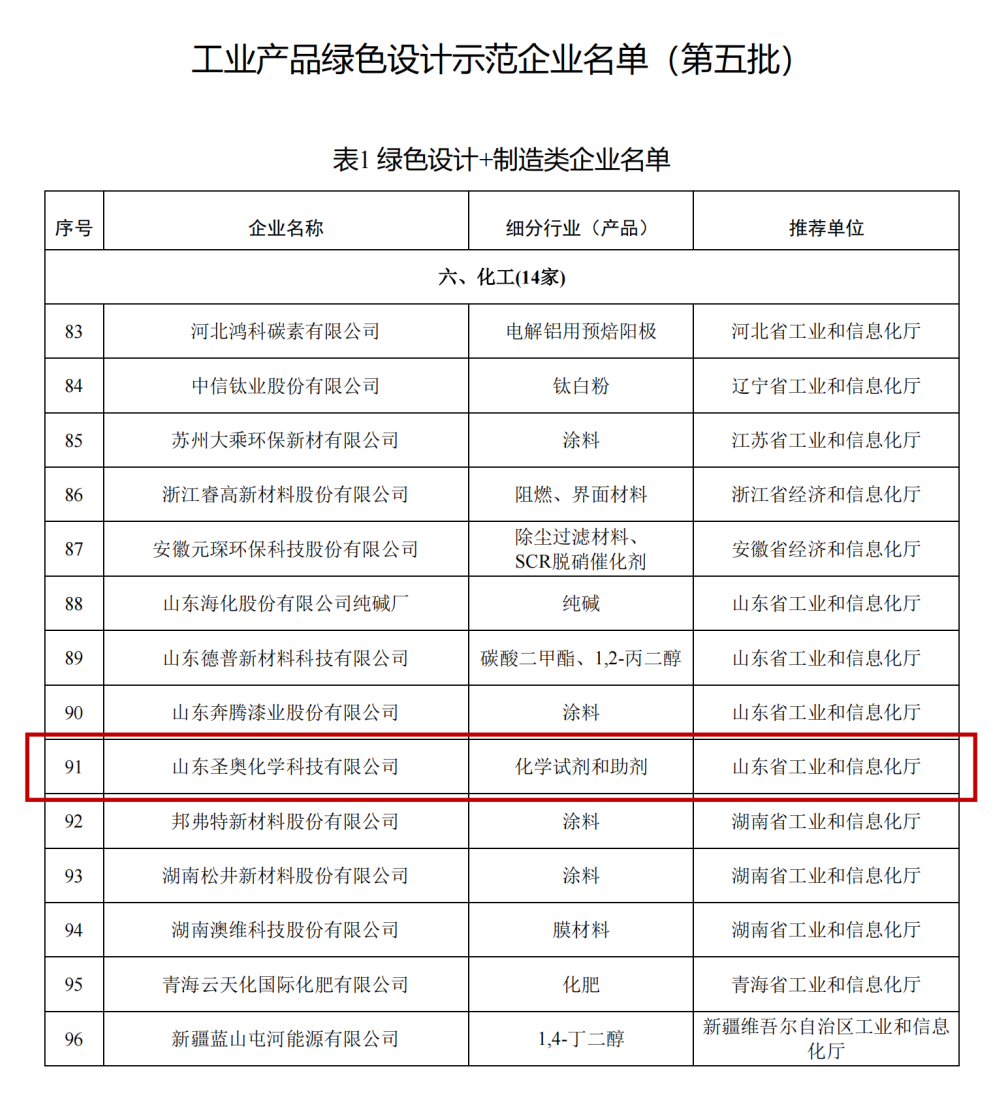 山东圣奥获评工信部工业产品绿色设计示范企业