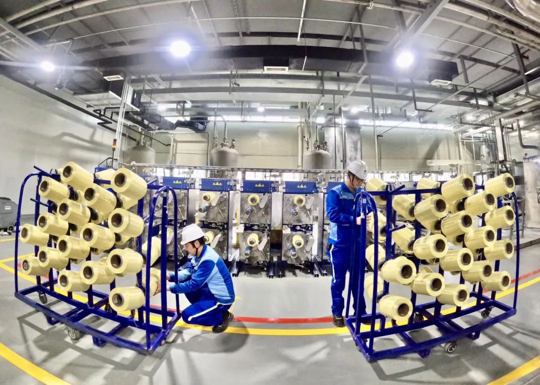 此外,该项目还攻克了多项关键技术壁垒,成功贯通投料全流程技术,实现高模对位芳纶热处理过程的精准控制。大规模、连续稳定生产的成套工艺与装备技术,不仅可保证芳纶产品质量的高度一致性和稳定性,还能提高设备的整体利用率和生产效率,降低单位产品所分摊的固定成本,实现成本的有效控制和效益的显著提升。