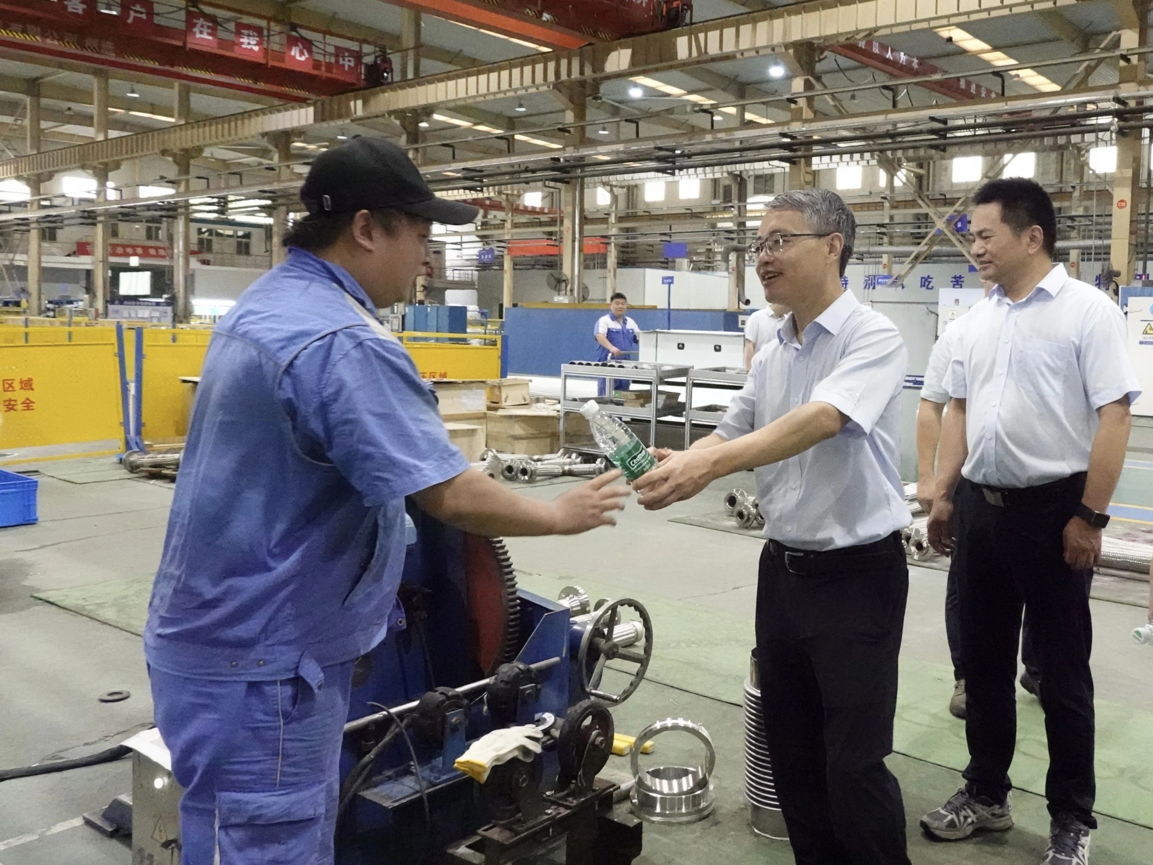 航天晨光党委书记、董事长赵康等领导班子成员,工会和本部相关部门负责人深入生产车间与作业现场,为奋战在高温下的一线职工送去防暑降温物资。慰问中,公司领导与一线职工亲切交谈,详细询问工作强度、作息安排及防暑措施落实情况,递上清凉饮品,反复叮嘱大家务必注意劳逸结合、做好自我防护。