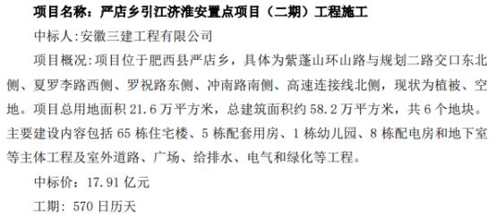 挖贝网12月17日,安徽建工(600502)发布公告,公司控股子公司安徽三建工程有限公司收到工程中标通知书。
