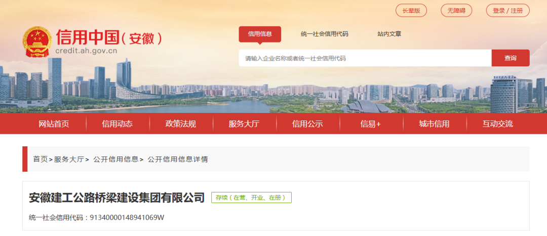 官网信息显示,安徽建工公路桥梁建设集团有限公司,前身为1950年组建的“皖南急要公路整修指挥部”所属的四个工程队。1984年,经安徽省委省政府批准成立。现为上市公司安徽建工集团的核心子公司。2024年6月,经安徽省市场监督管理局核准,公司名称由“安徽省公路桥梁工程有限公司”变更为“安徽建工公路桥梁建设集团有限公司”。公司注册资本22.15亿元,下设50多家各类分子公司。
