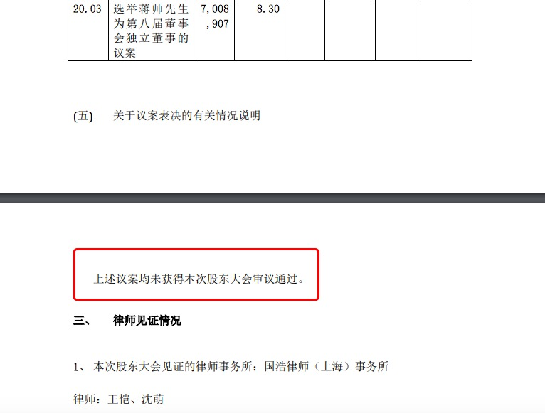 (3)说明对上述否决议案的后续安排及具体解决措施;