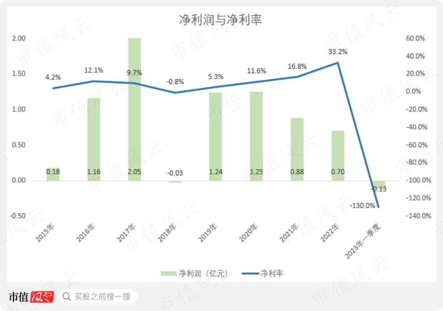 但诡异的是,在这种情况下,公司居然还能盈利,而且利润率还不低:公司2022年净利润0.7亿,净利率高达33%。