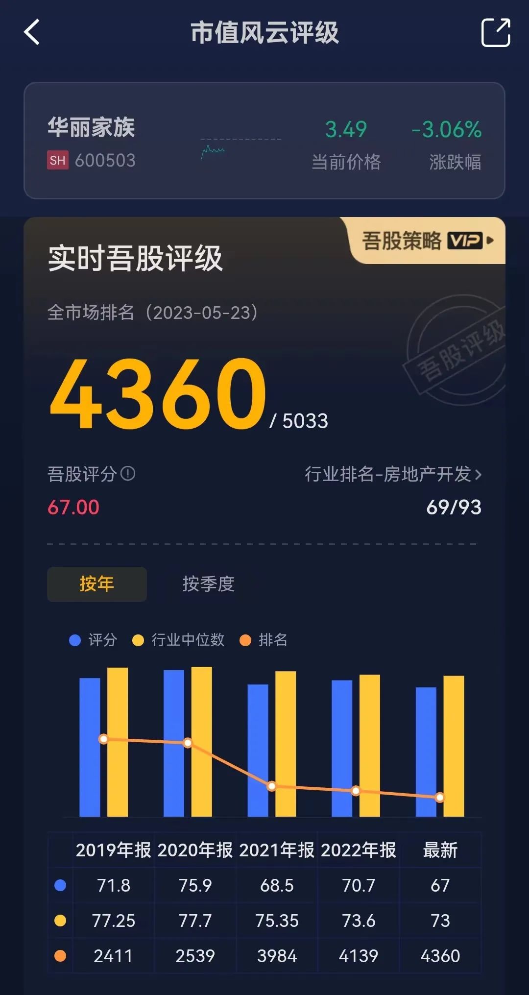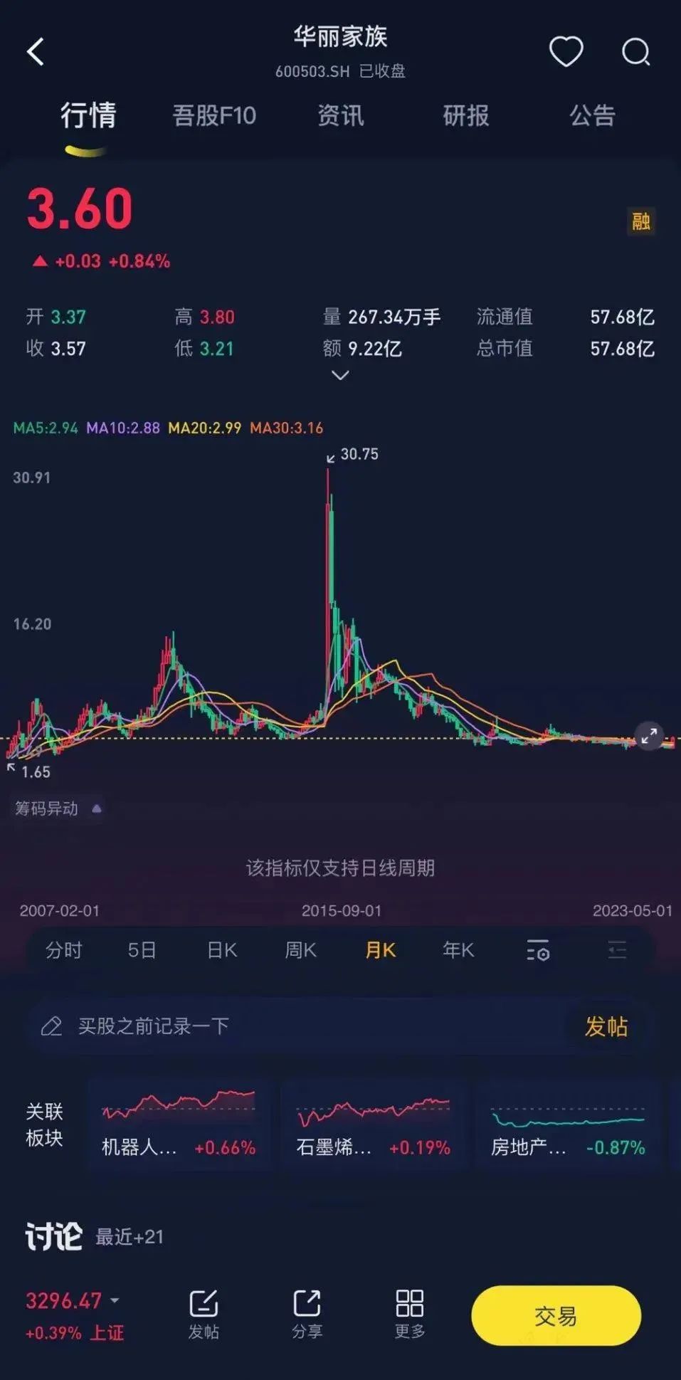 哎哟,这不是从2015年徐翔被抓开始就一直跌跌不休的“徐翔概念股”,房地产公司华丽家族(600503.SH,公司)吗?