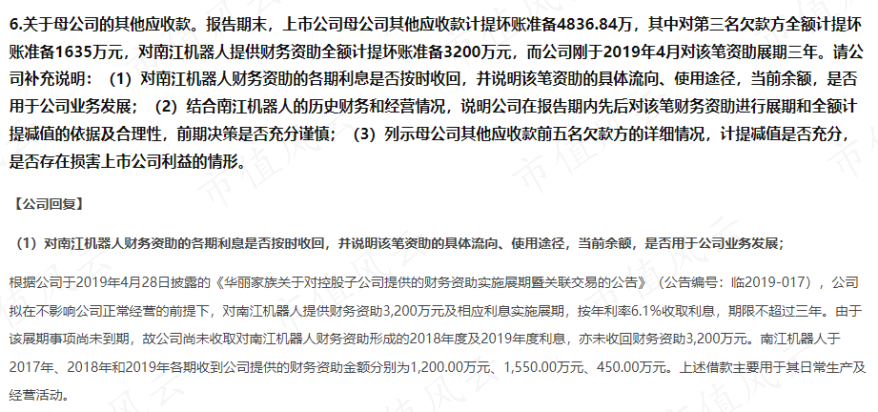 2019年4月,公司对南江机器人债务展期3年,然后立马在2019年年报中对3,200万全额减值,实在匪夷所思。