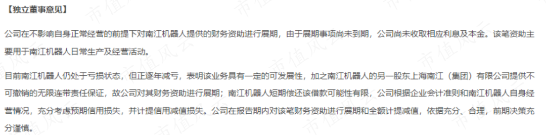 对此,公司独立董事进行了解释,简单来说就是南江机器人虽然现在很烂,但是未来可能好转,而且还有大股东提供的“不可撤销的无限连带责任保证”,因此这笔欠款很靠谱,只是出于审慎角度计提减值而已。