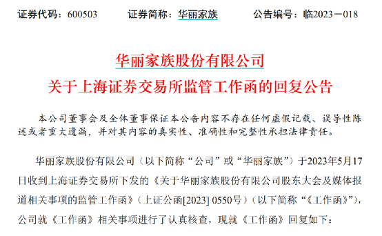 5月24日晚间,华丽家族发布了《关于上海证券交易所监管工作函的回复公告》,主要针对此前交易所提出的3大问题,分7个部分进行了回复。