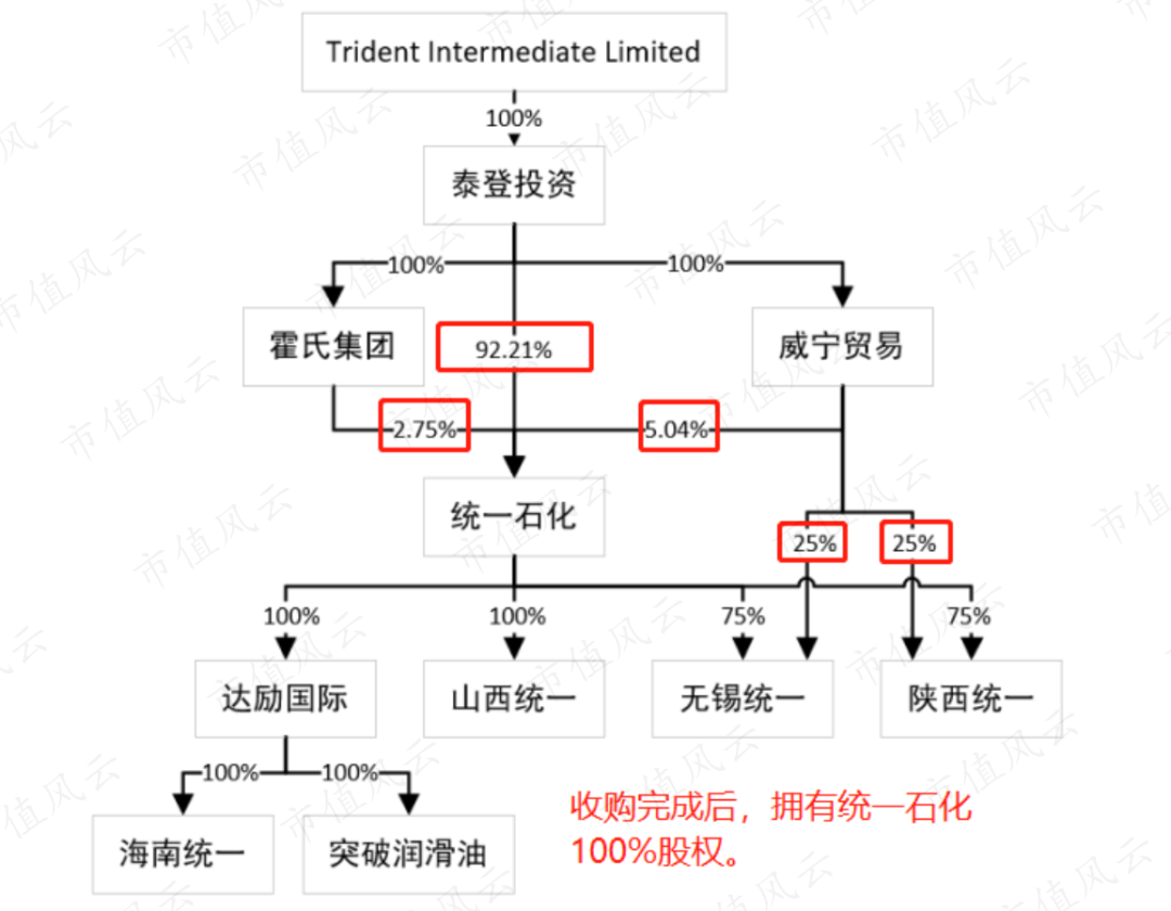 (注:交易对手方为泰登投资、威宁贸易和霍氏集团;收购标的为统一石化、无锡统一及陕西统一)