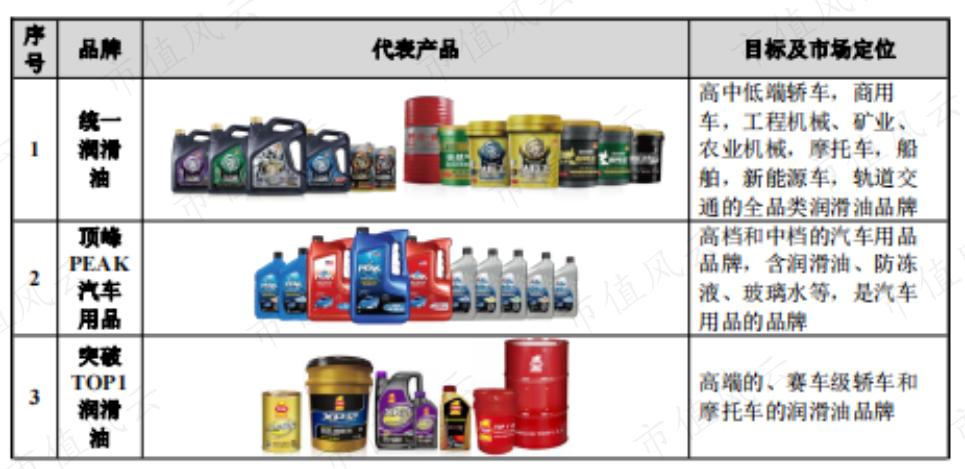 旗下拥有“统一润滑油”、“美国顶峰 PEAK”、“美国 TOP1突破润滑油”等品牌产品。