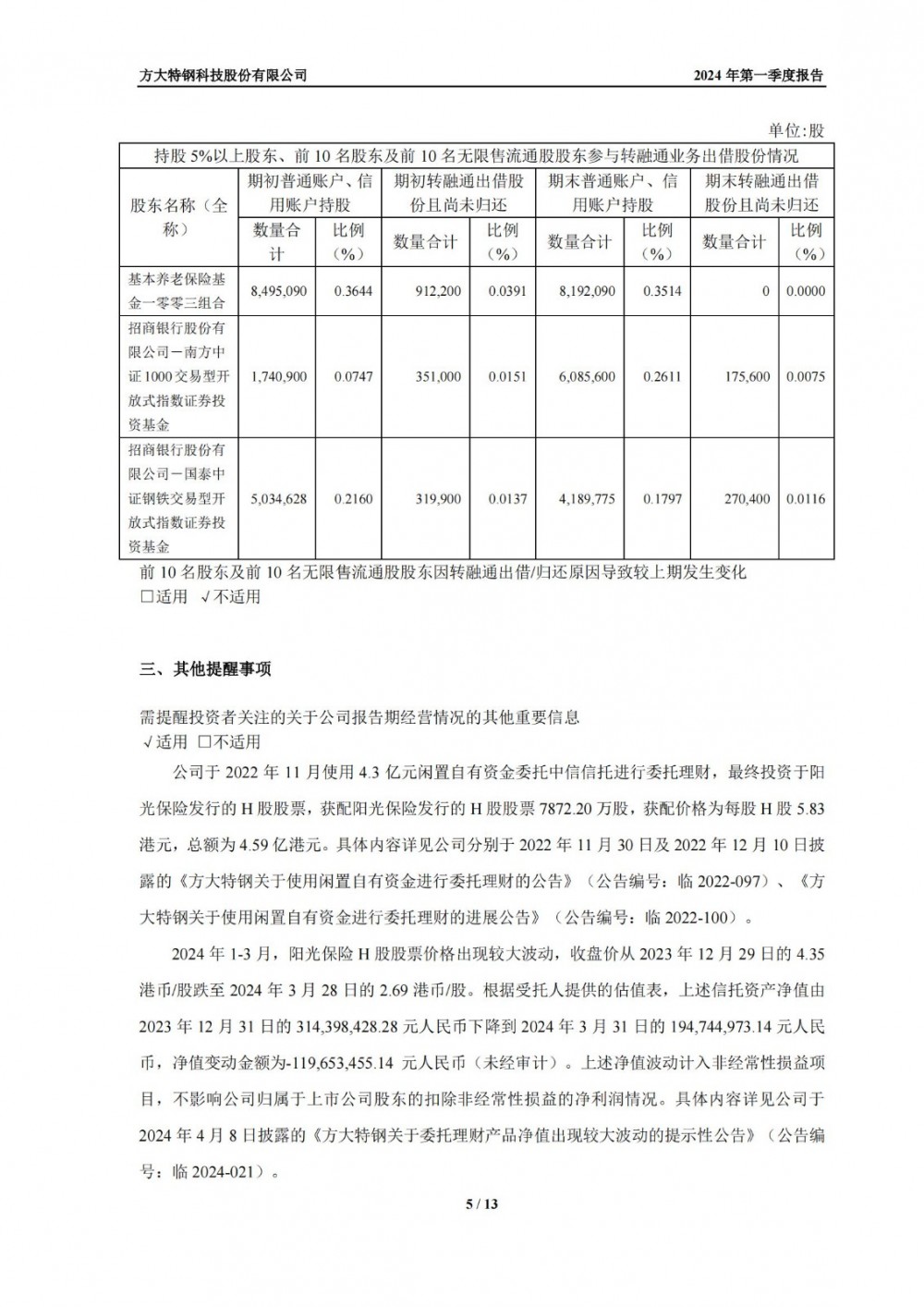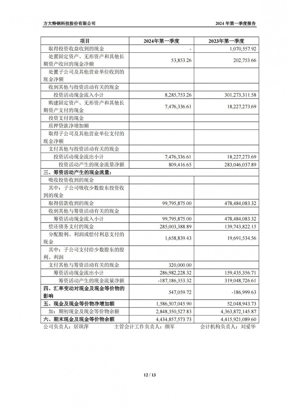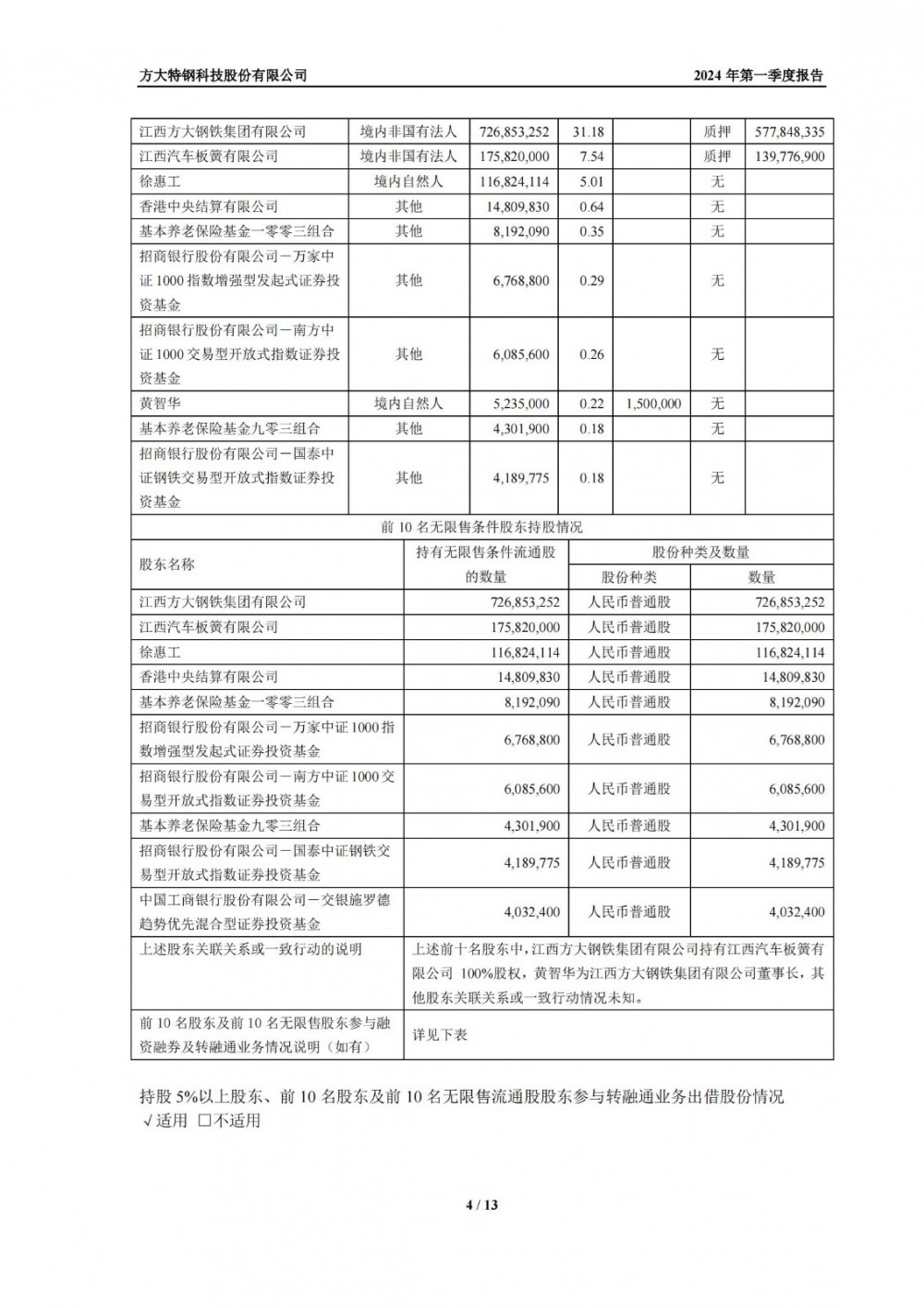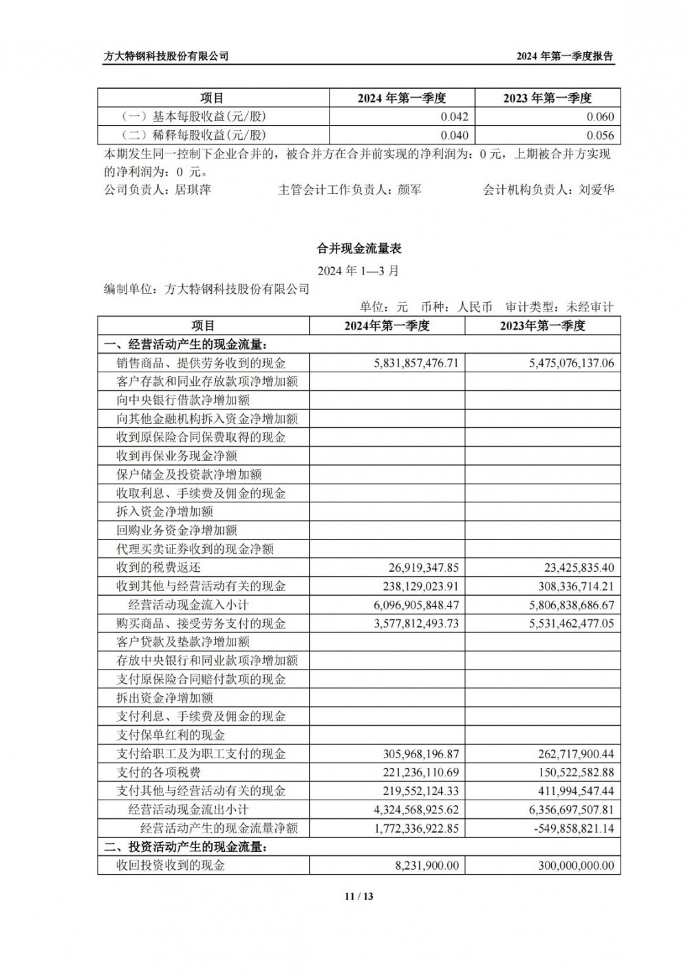 近日,方大特钢发布2024年第一季度报告。2024年第一季度,公司营收约58.74亿元,同比减少7.74%;归属于上市公司股东的净利润约9341万元,同比减少27.95%。基本每股收益0.042元,加权平均净资产收益率1.01%。