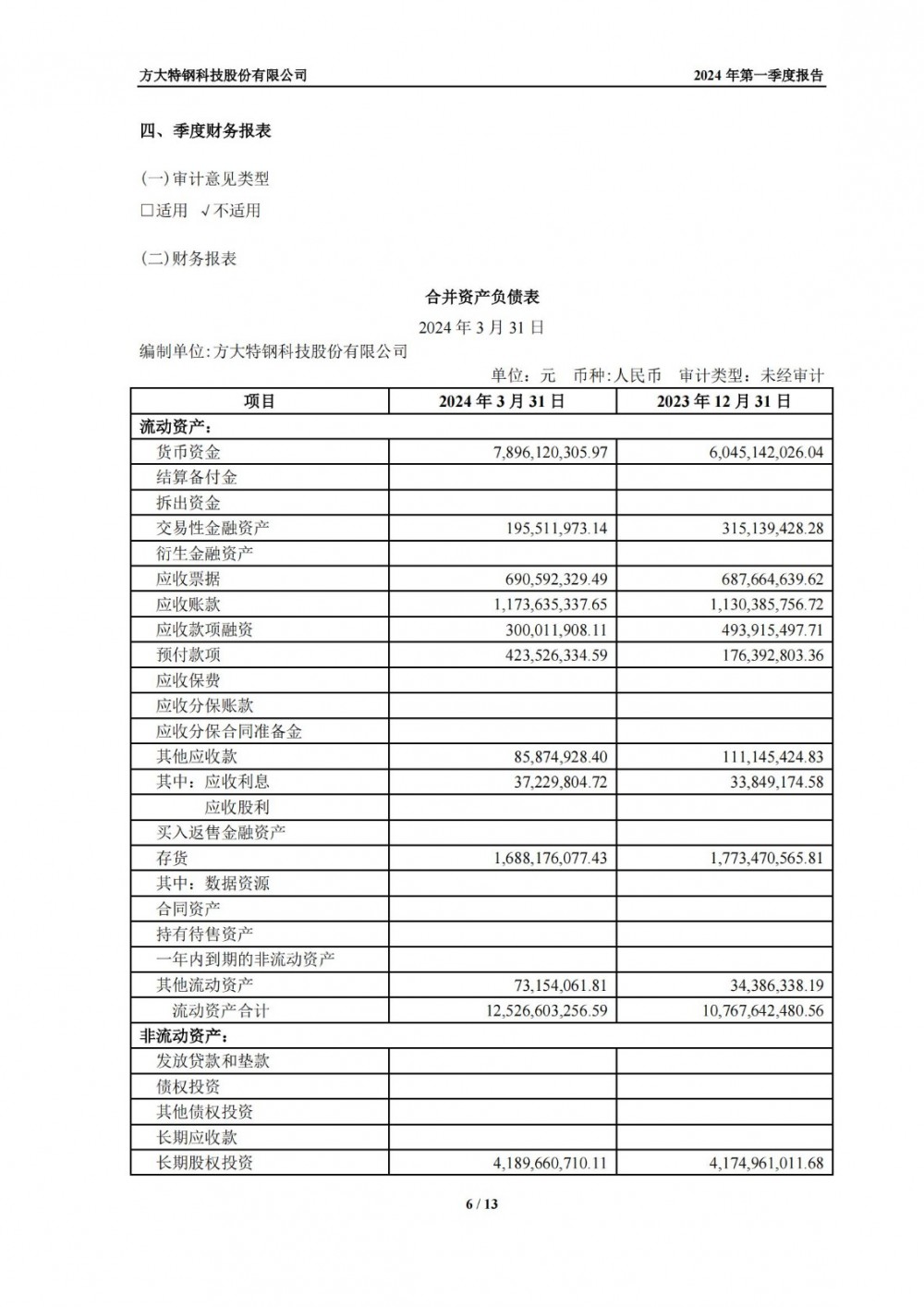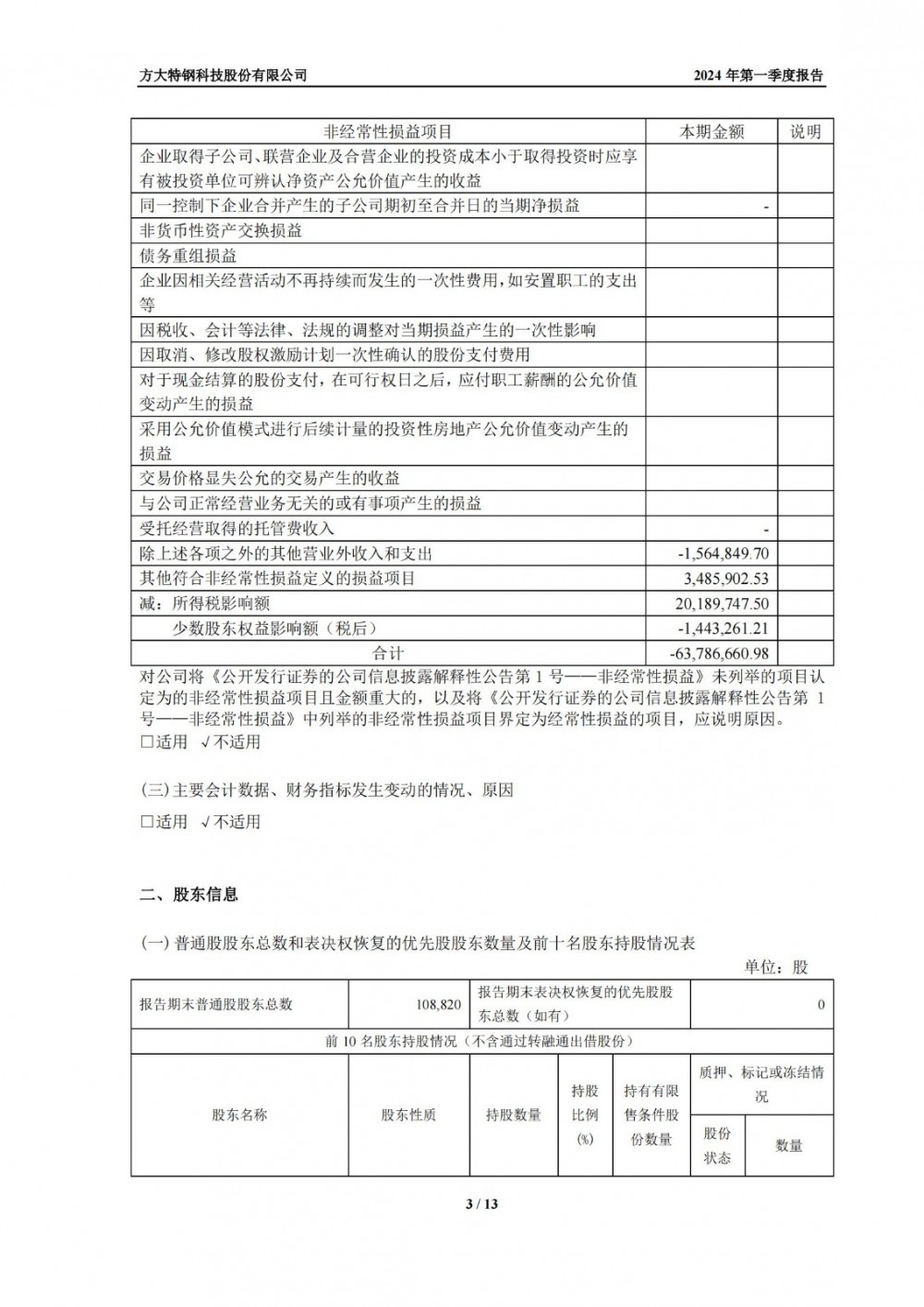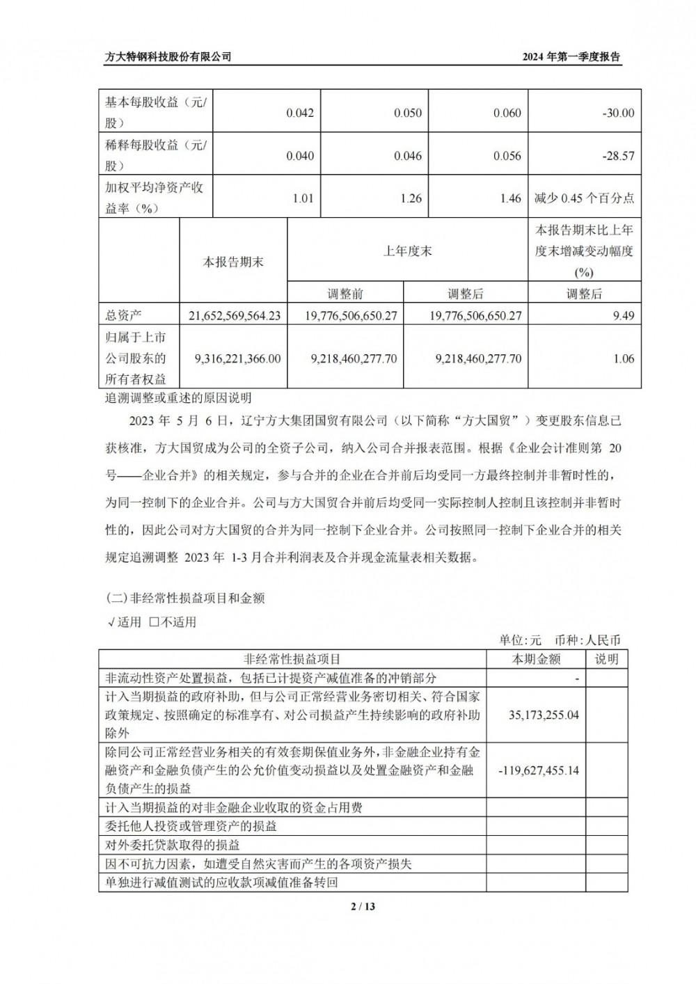 近日,方大特钢发布2024年第一季度报告。2024年第一季度,公司营收约58.74亿元,同比减少7.74%;归属于上市公司股东的净利润约9341万元,同比减少27.95%。基本每股收益0.042元,加权平均净资产收益率1.01%。