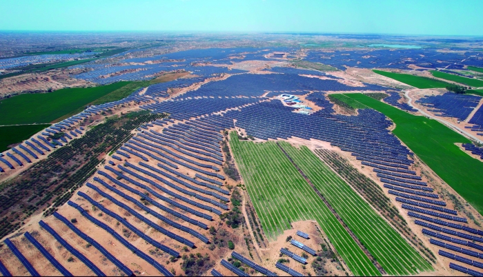 | 石玛兵地融合5GW光伏防沙治沙项目一隅 | |