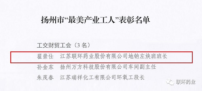 近日,从市产改办传来喜讯,联环药业荣获新时代扬州产业工人队伍建设改革“先进企业”称号,联环股份地钠左炔班班长翟崇仕荣获“最美产业工人”称号。