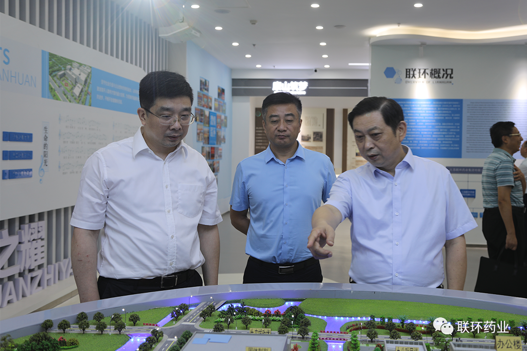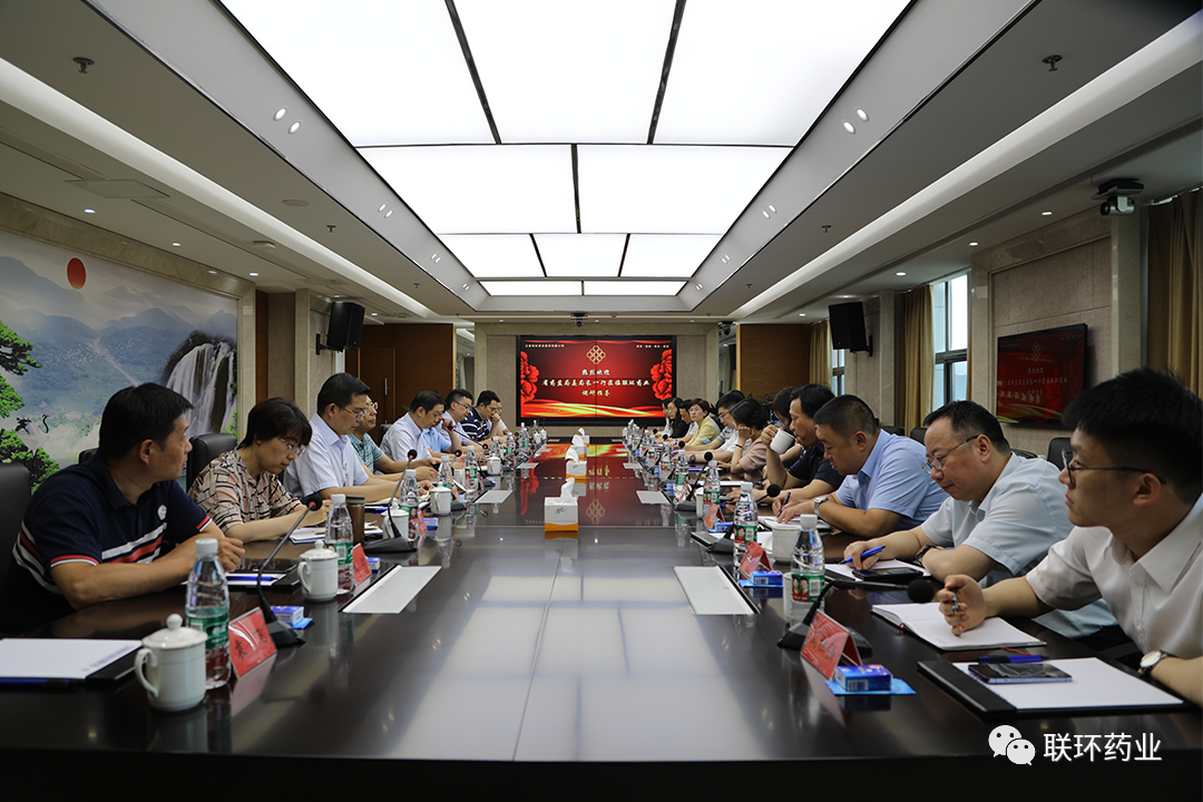 姜伟一行参观了公司企业文化展示中心,详细了解了联环药业的发展历程,并在公司会议室召开了座谈会。