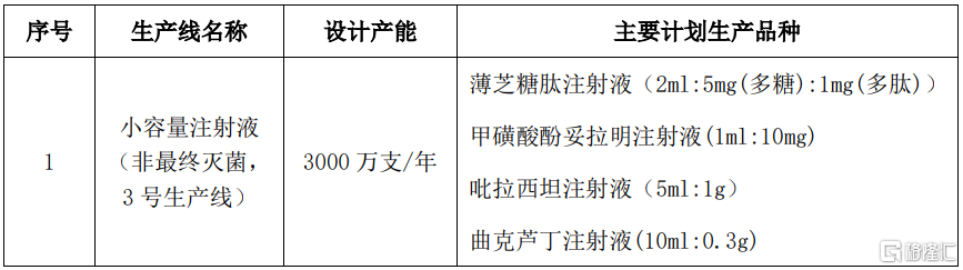此次小容量注射液(非最终灭菌,3号生产线)药品GMP符合性检查是公司生产场地变更后新建生产线的相关检查,该生产线的投入约为5000万元人民币(未经审计)。