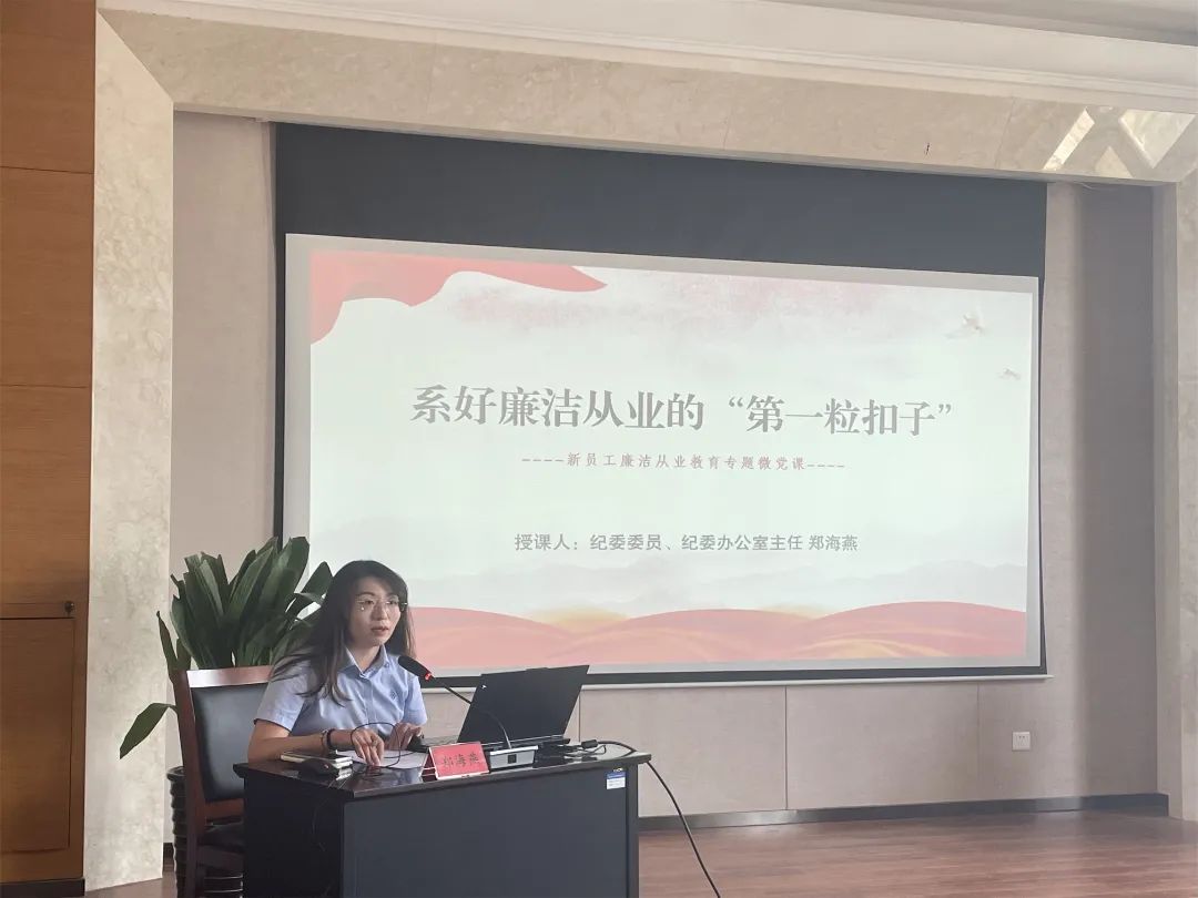 开班仪式后,新员工集中观看了公司宣传片,进一步了解了公司概况。随后,党办、纪委办相关负责人和药物警戒部相关人员分别对新员工开展了党性教育、廉洁从业教育以及药物警戒知识培训专题教学。