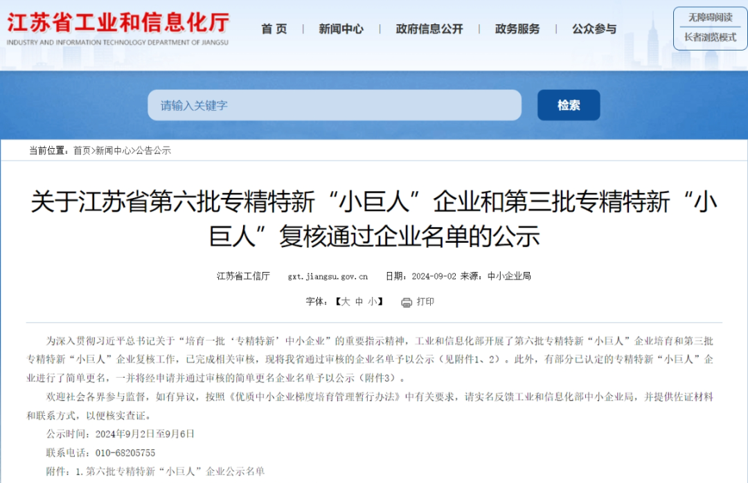 国家级专精特新“小巨人”是经省级主管部门组织报送、由国家工信部专家审核等流程评选而出,是相关企业评定工作中最高等级、最具权威的荣誉称号。入选的企业均具备专业化、精细化、特色化、新颖化特征,是专注于细分市场、创新能力强、市场占有率高、掌握关键核心技术、质量效益优的排头兵企业。