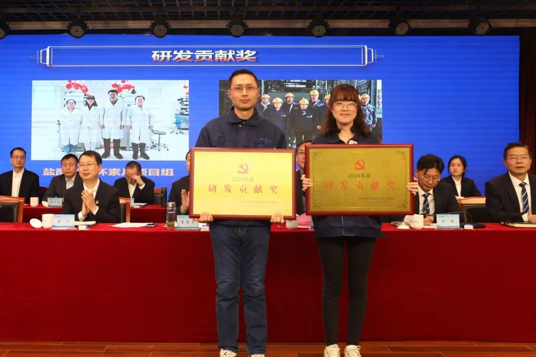 随后,副董事长涂斌宣读了《关于表彰2024年度科技创新先进集体的决定》,党委副书记谭志刚宣读了《关于表彰2024年度研发先进个人的决定》,大会对2个研发贡献奖、7个优秀项目团队奖、1个科技攻关奖、4个技术革新奖、10名综合考评先进个人、6名最佳奉献员工、5名最佳新人和2个研发立项奖进行了表彰。