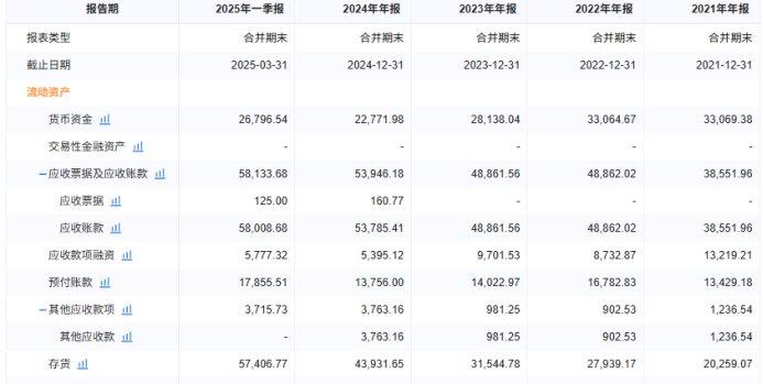 年报数据显示,2021年至2024年,联环药业的应收账款及应收票据规模不断走高,分别为3.86亿、4.89亿、4.89亿、5.39亿,到了今年一季度,继续增至5.81亿;