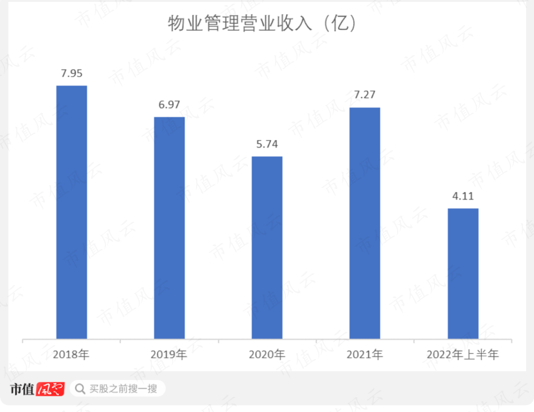 2022年上半年营收4.11亿元,同比微增3.79%,收入主要来自物业费、餐饮服务费。