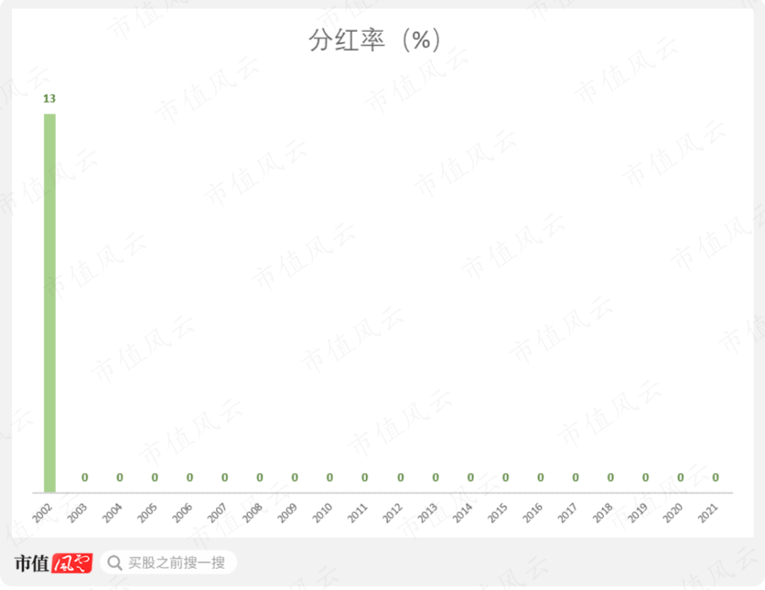该公司就2002年,上市那年,有一次分红,后面就直接交白卷。