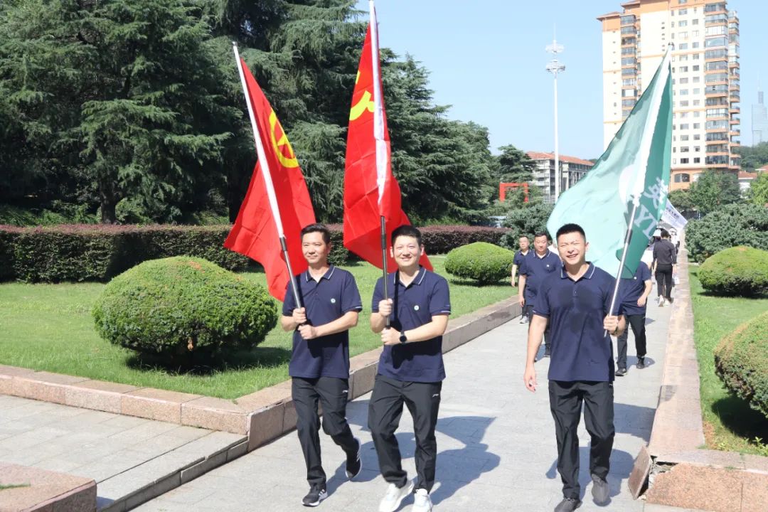 随后,健步走活动正式拉开序幕,大家从白马公园登山点出发,沿着紫金山山道拾级而上,最终到达紫金山天文台。登山途中,大家唱红歌、喊口号,将爱国爱家的情怀和绿色低碳的理念传播给众人,昂扬的员工风貌和热烈的活动气氛吸引了不少登山爱好者一起加入到登山队伍中来。在红色党旗的引领下,国网英大集团南京金融中心井然有序的登山队伍成为了紫金山上最美丽的一道风景线。