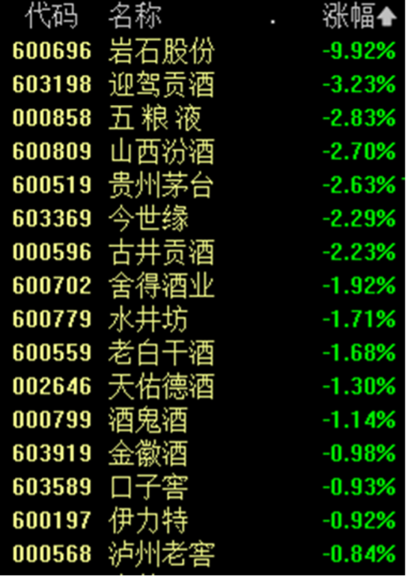 白酒板块方面,迎驾贡酒、五粮液等个股跌幅居前。