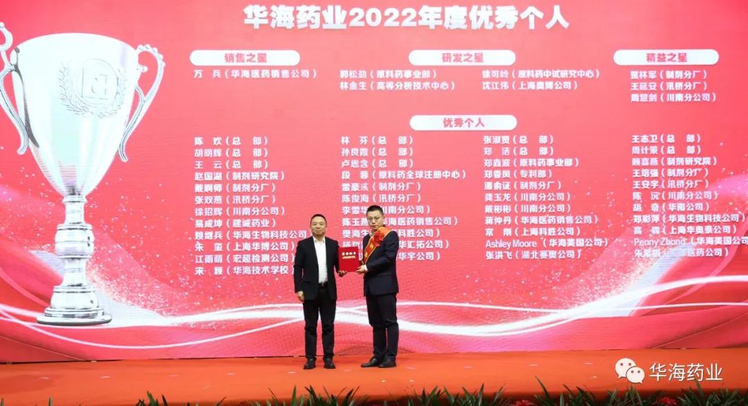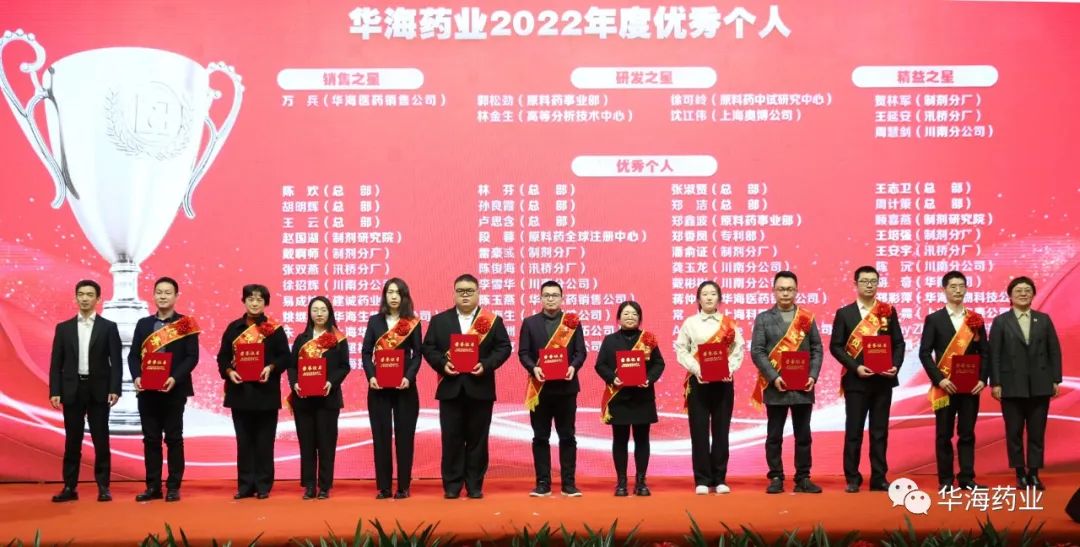 1月17日,华海药业隆重召开2022年度总结表彰大会,公司董事长李宏主持。