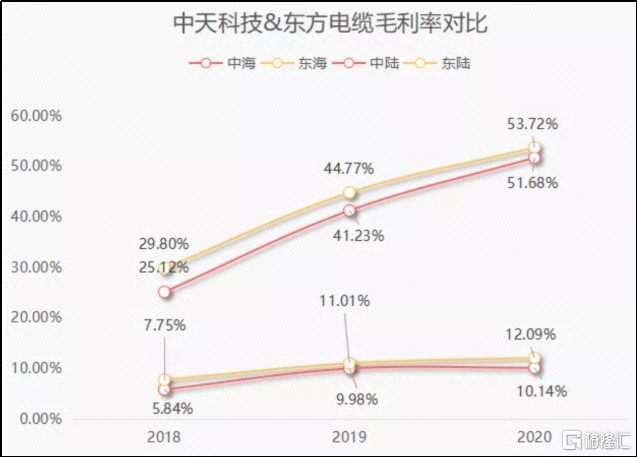 从年报披露的数据来看,毛利方面,虽然东方海缆毛利率高于中天海缆,但两者相差并不远。