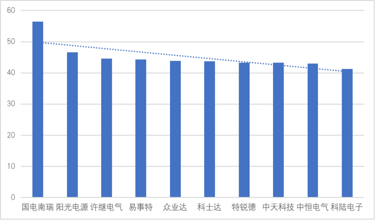 图1 “充电桩设备制造”赛道企业品牌优势值(100分制)