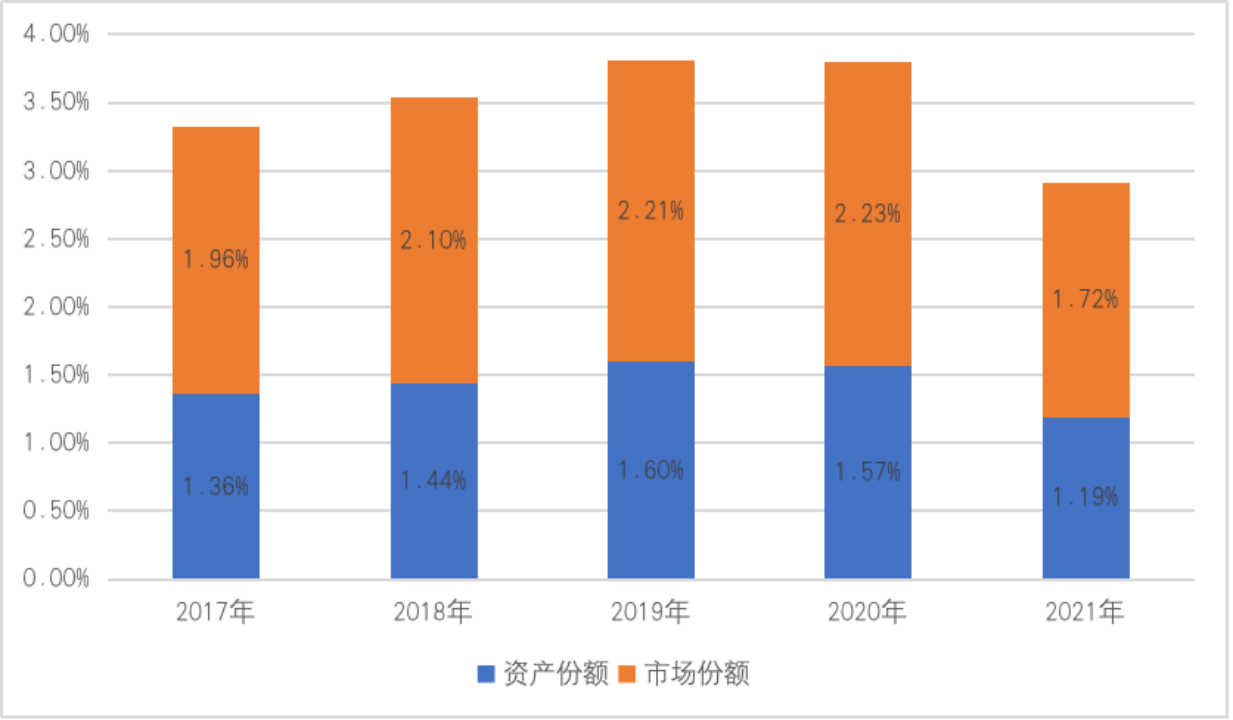 ——品牌影响力有所削弱。2017年至2020年,中天科技的品牌影响力呈现稳步上升的趋势(见图2),其资产份额由1.36%上升到1.57%,市场份额1.96%上升到2.23%。但值得关注的是,2021年中天科技的品牌影响力有所下降,在近五年里达到最低。在未来发展中,公司需要紧抓机遇,发挥自身优势,提高品牌影响力与行业地位。