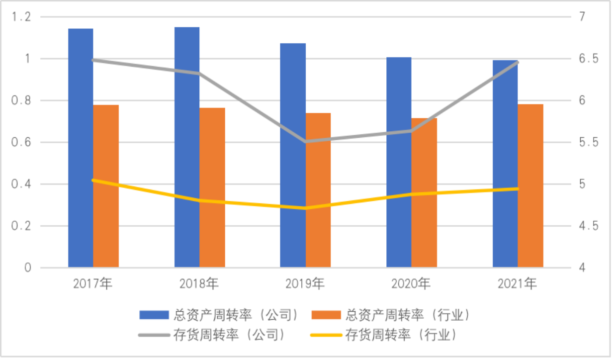 图6 2017年~2021年中天科技和所在行业的营运能力变动情况