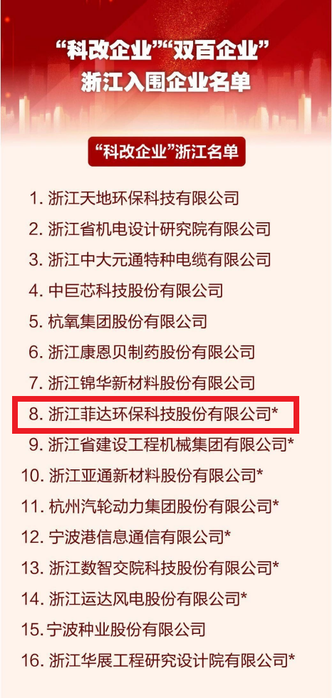 近日,国务院国资委公布两项国企改革专项行动——“科改行动”“双百行动”扩围深化名单,其中,金控投资公司投资企业——浙江菲达环保科技股份有限公司(以下简称“菲达环保”)入围国企“科改企业”扩围深化名单,为本次入围名单中新增的八家浙江国资企业之一。