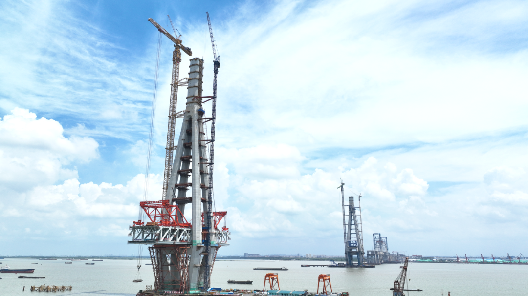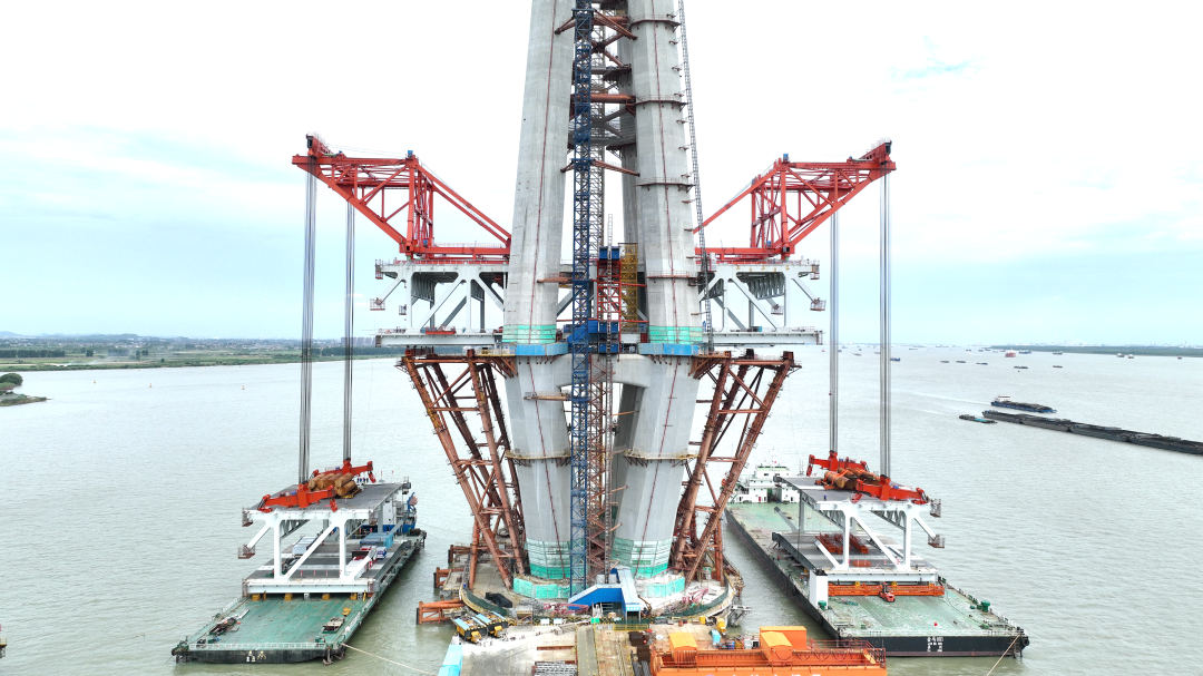 7月27日,由中铁工业旗下中铁山桥制造的重量均为1544吨左右的两大超级节段,顺利运抵世界最大跨度公铁两用斜拉桥——常泰长江大桥施工桥位,在两台中铁科工研制的BL1700吨架梁吊机的吊装下,成功完成该标段的首节段钢梁对称架设,充分印证了中铁工业在钢桥梁制造安装一体化领域的领军地位。