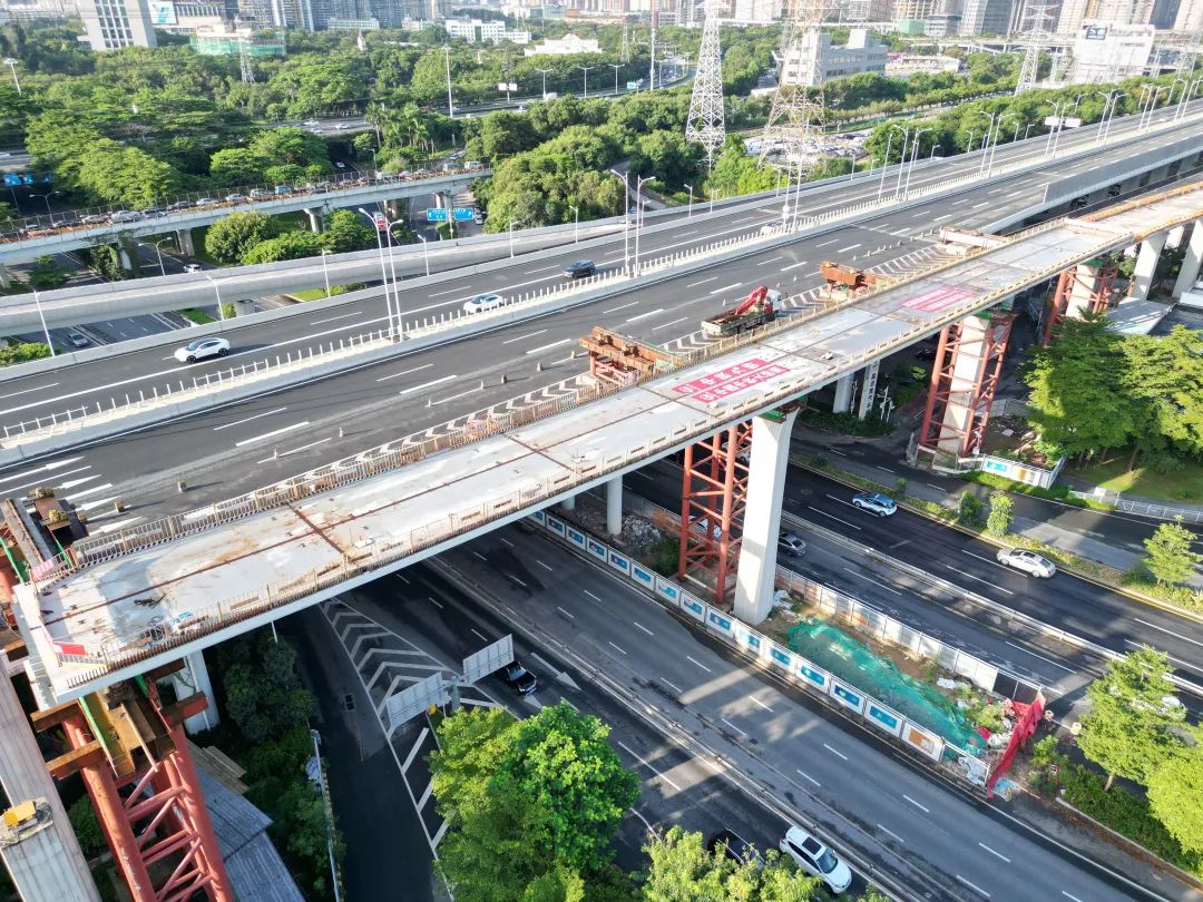 深圳市新城立交项目跨G107国道钢箱梁精准横移到位