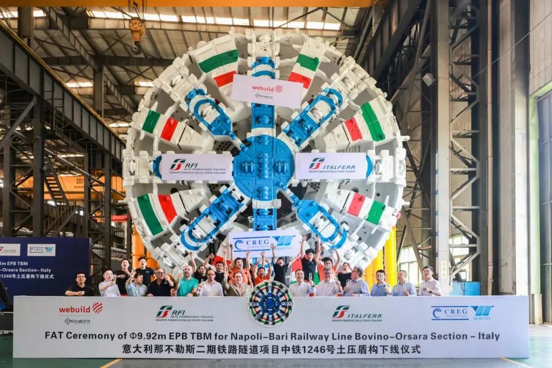 7月26日、31日,由中铁装备研制的“中铁1246 1248号”土压平衡盾构机分别在上海、嘉兴基地正式下线。这两台设备将应用于意大利那不勒斯二期铁路隧道项目Bovino-Orsara标段及Hirpinia-Orsara标段隧道建设,对促进意大利南部的社会经济发展具有重要的意义。该项目标段的其余两台设备(中铁1249 1247号)将在今年底及2024年初陆续下线,共同助力项目建设。