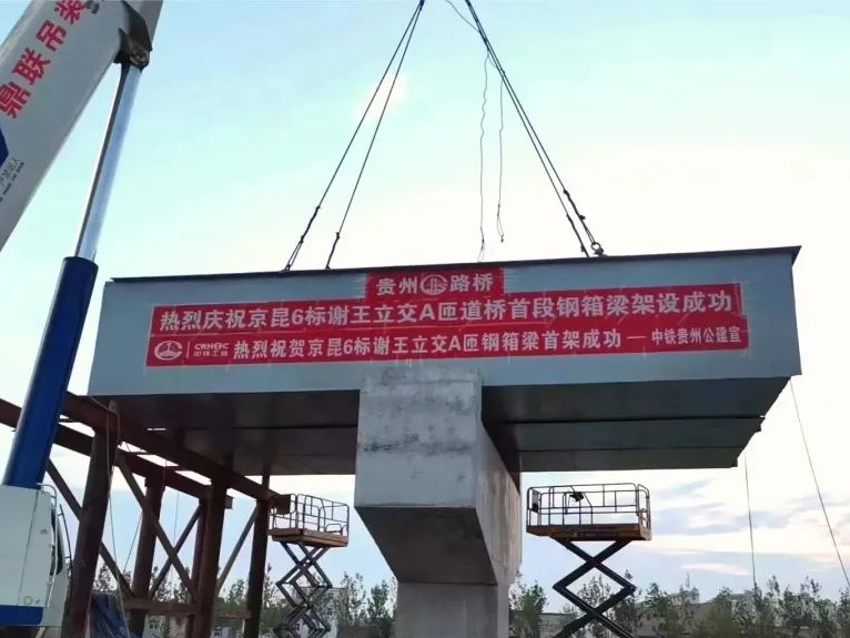 京昆高速6标谢王立交A匝道首联钢箱梁完成架设