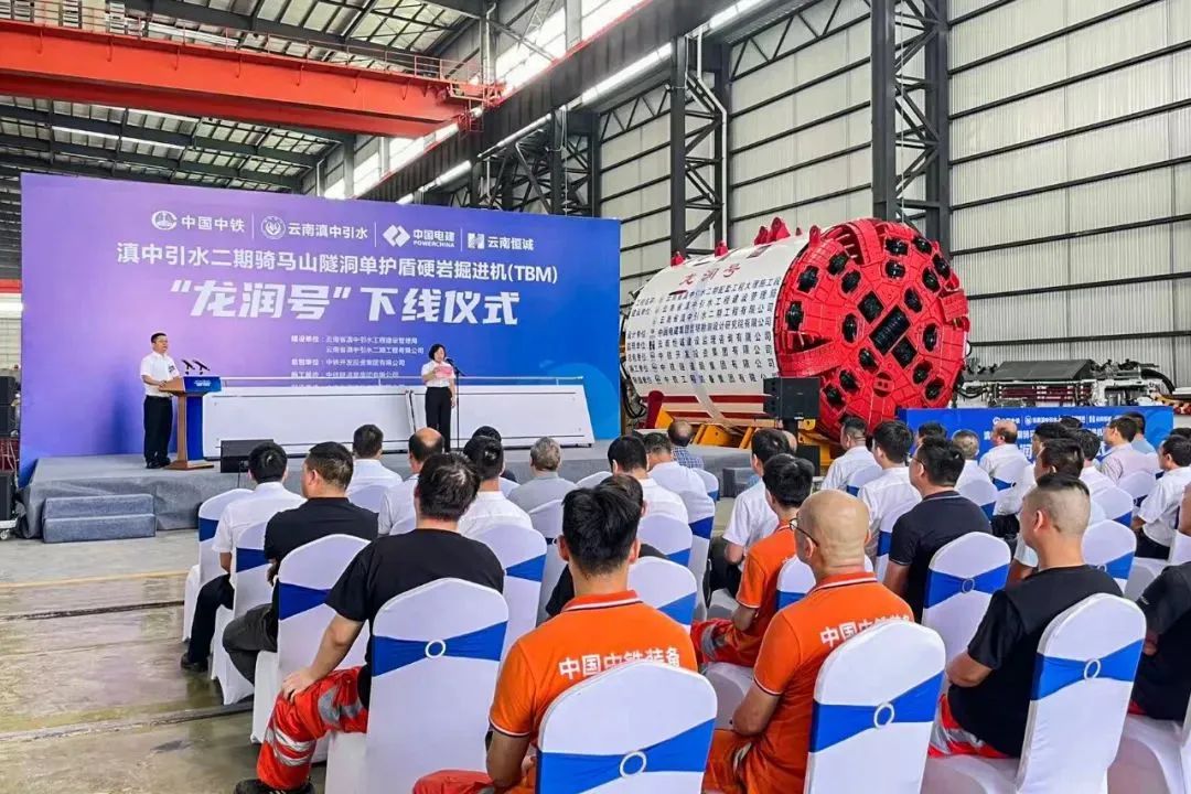8月8日,由中铁隧道局和中铁工业旗下中铁装备共同研制的世界引调水工程最小直径单护盾TBM“龙润号”(中铁1325号)在四川德阳成功下线,该设备将应用于滇中引水二期配套工程大理施工段骑马山隧洞工程项目,这是滇中引水二期配套工程首台单护盾TBM,为滇中引水工程建设提速再添施工“利器”。
